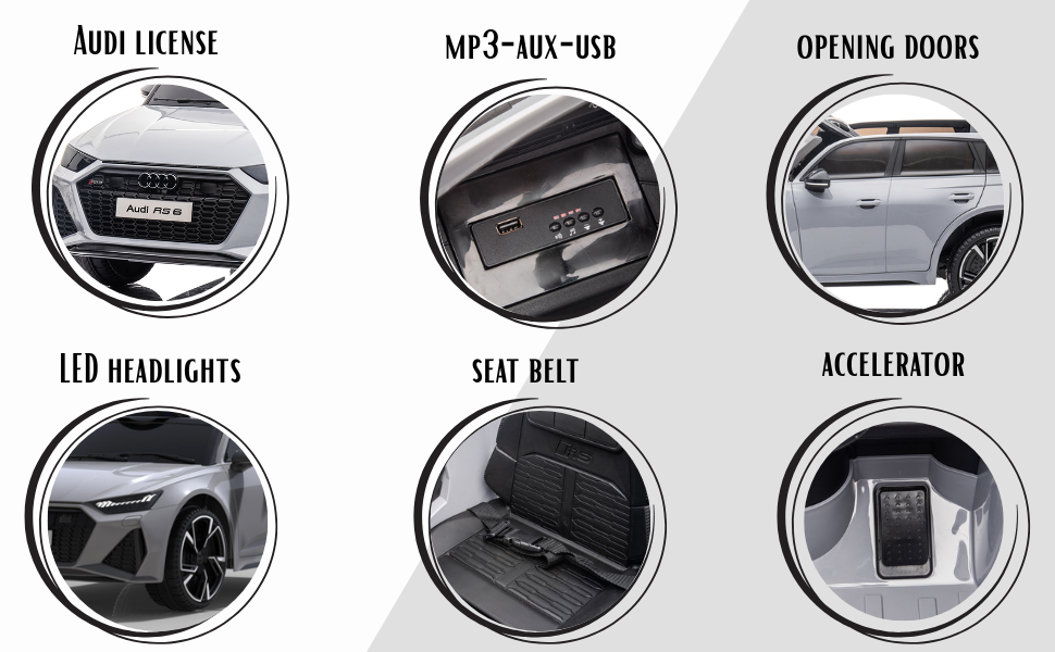 Faites vivre à vos enfants l’expérience de conduire une véritable Audi RS6 avec cette fidèle reproduction électrique. Élégante, sportive et sûre, elle est réalisée avec l’autorisation officielle AUDI, garantissant la qualité et la fiabilité typiques de la marque.