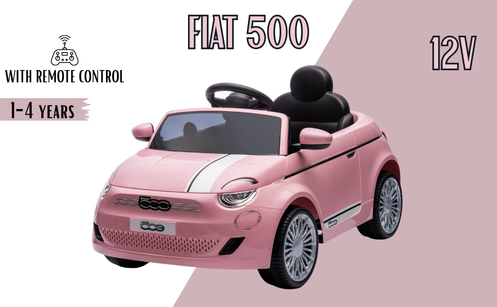 Fiat 500e 12V Voiture électrique pour enfants-Rose