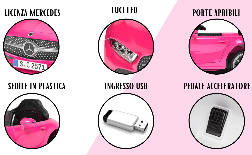 Accendi i motori e regala ai più piccoli un'esperienza di guida realistica con la Macchina Elettrica per Bambini 12V con licenza ufficiale Mercedes CLS. Progettata per divertimento e sicurezza, questa mini-auto monta fari a LED, sedile con cintura, volante con cruscotto e numerose finiture realistiche che la rendono perfetta come primo veicolo giocattolo.