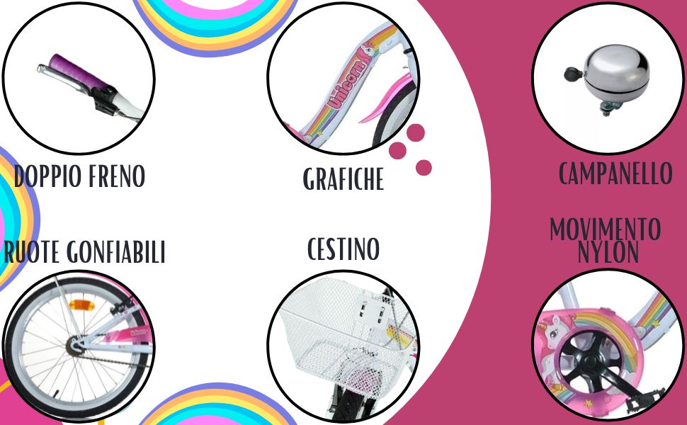 Finalmente è arrivata! La bicicletta che ogni bambina dolce e sognatrice stava aspettando! Romantica e con i colori dell’arcobaleno, sarà la protagonista delle giornate trascorse all’aria aperta. In sella sembrerà di essere a cavallo di un magico Unicorno!