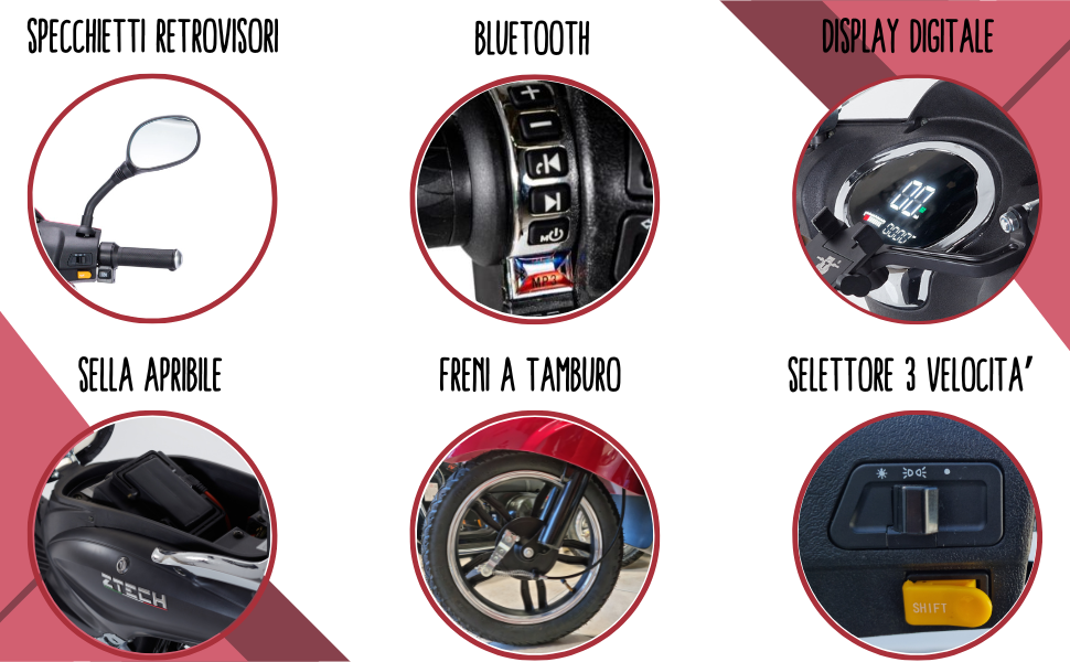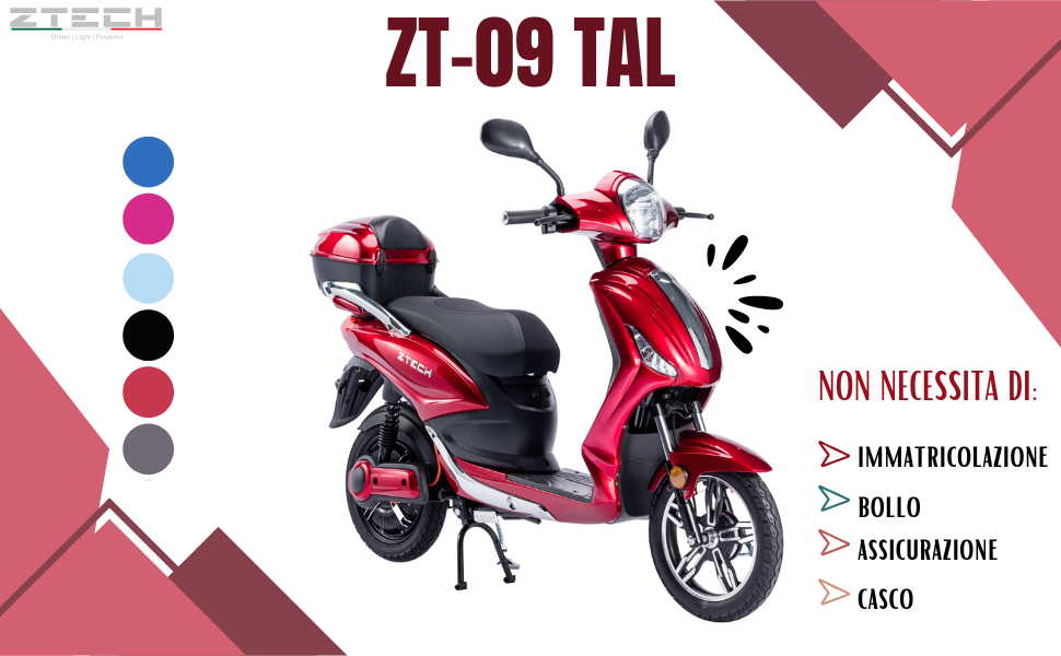 Bici Elettrica Scooter Z-TECH ZT-09-TAL 12 Ah 250W 48V Batteria Litio