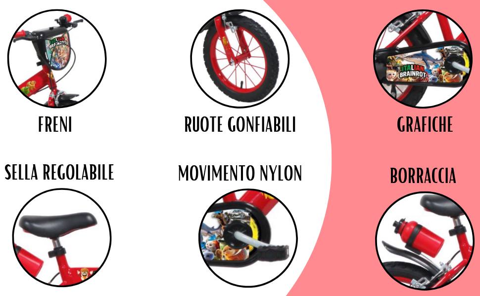 Le ruote sono di dimensioni 16x1,175 cm ed ha freno anteriore e posterirore in acciaio.