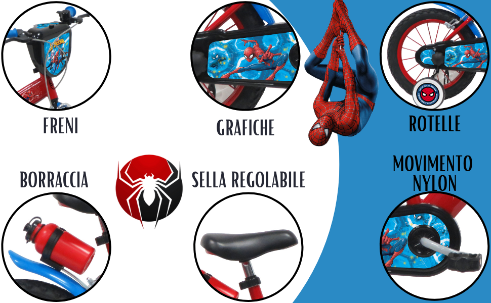 Sui parafanghi ci sono delle bellissime immagini di Spiderman, la sella è morbida per accompagnare le tante ore in bici dei bambini.