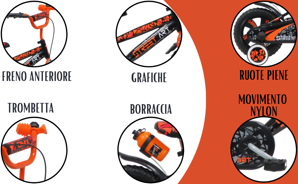 La bicicletta Street Art da 30,5 cm è dotata anche di sella e manubrio regolabili e viene fornita con un corno stridente, una bottiglia per bevande e un supporto sul retro della bicicletta e uno scudo anteriore.