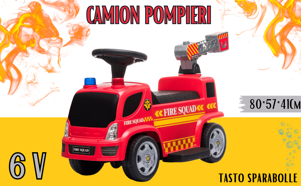 Camion dei Pompieri Elettrico Per Bambini 6V Spara Bolle