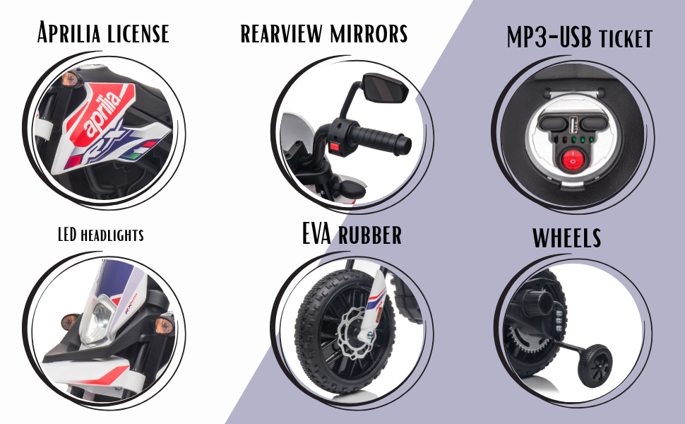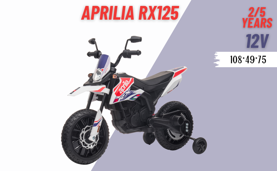 Moto électrique Aprilia Racing RX125 12V pour enfants avec roues EVA