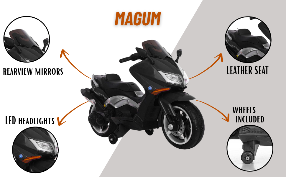 Moto électrique Magnum 12V pour enfants avec siège en cuir