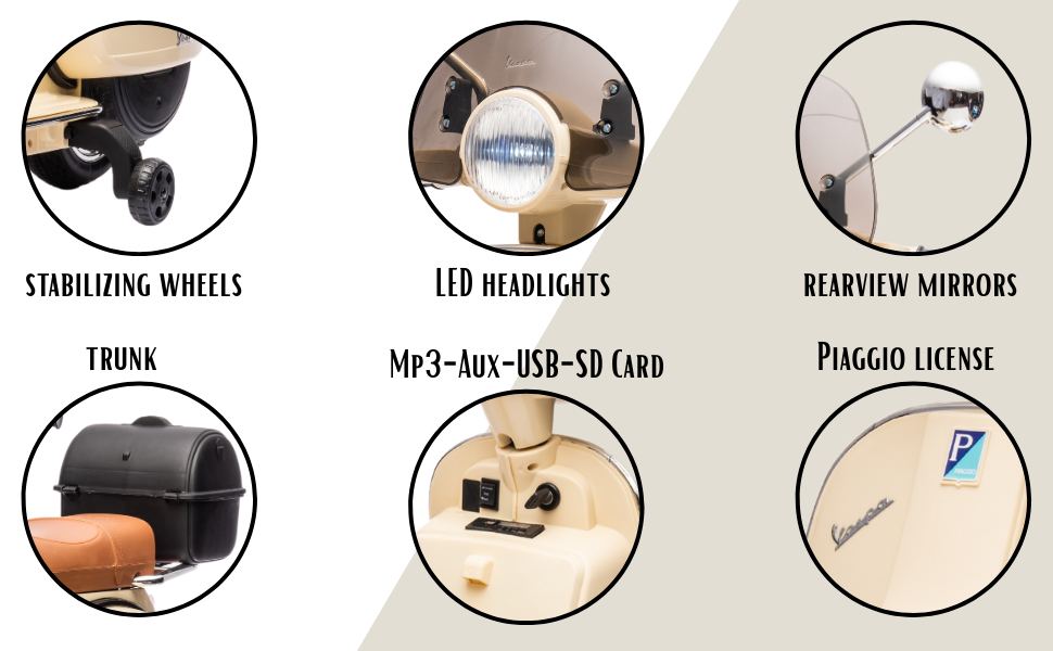Moto électrique Piaggio Vespa PX150 pour enfants 12 V