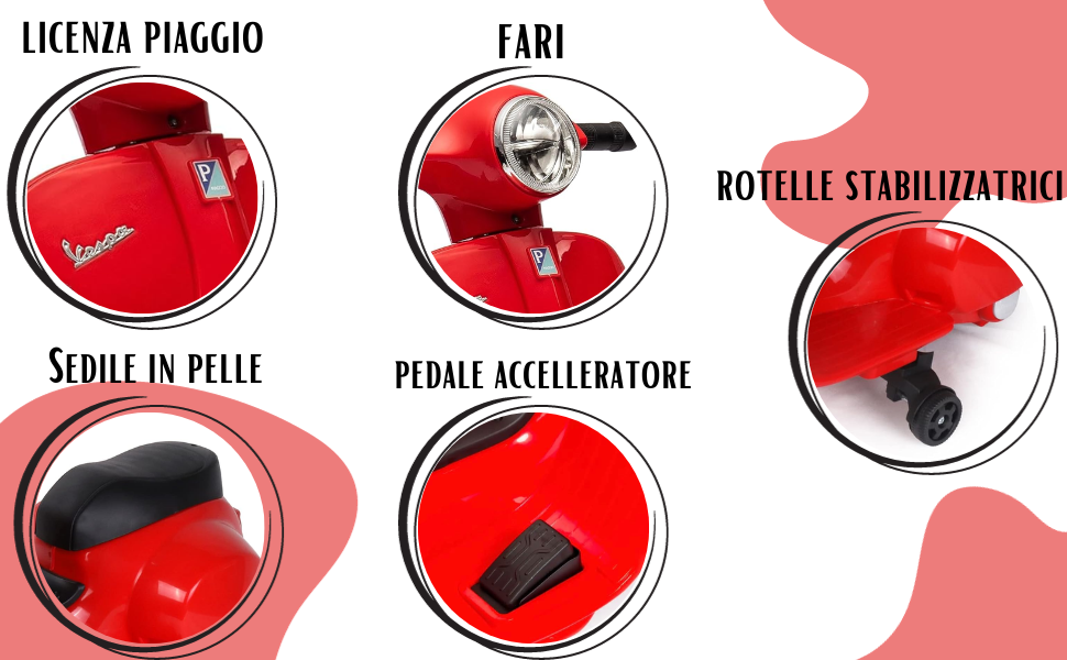 Moto Scooter Elettrico per Bambini Piaggio Vespa Mini GTS Super 6V
