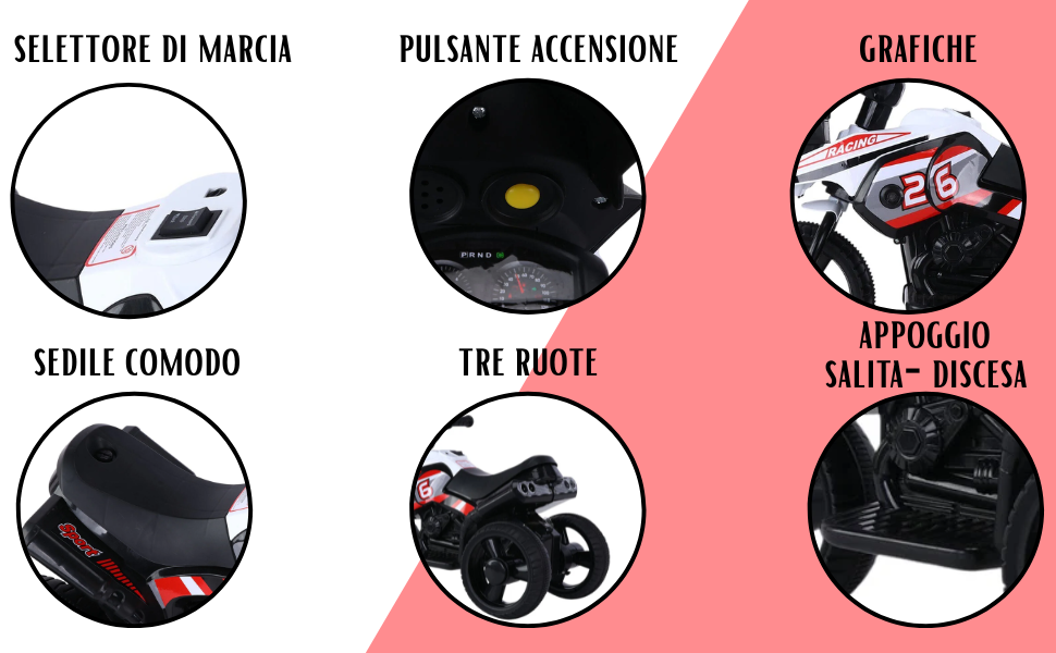 - Comandi intuitivi: acceleratore e freno facili da usare dai più piccoli.
