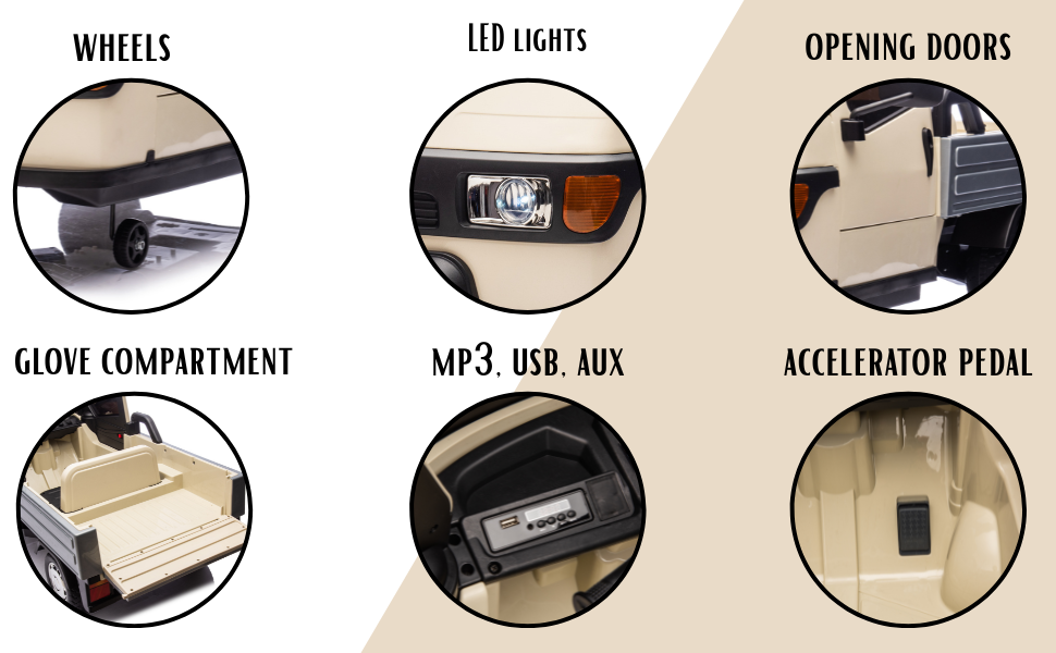 - Éclairage et audio : Feux LED, sons réalistes, musiques préenregistrées, entrée MP3