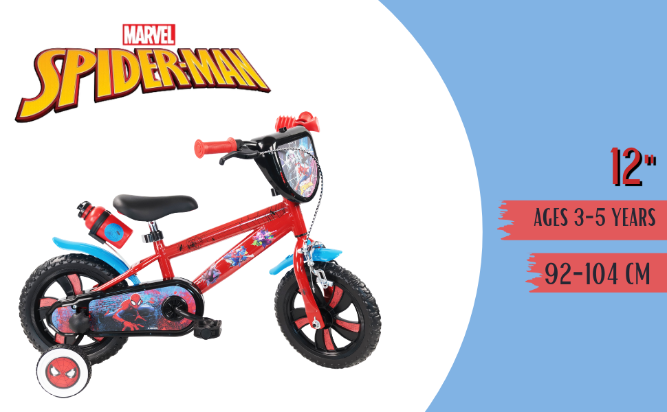 Divertimento e sicurezza: la bicicletta Marvel Spider-Man 12" è perfetta per le prime pedalate dei più piccoli, combinando robustezza, comfort e un design amato dai bambini.