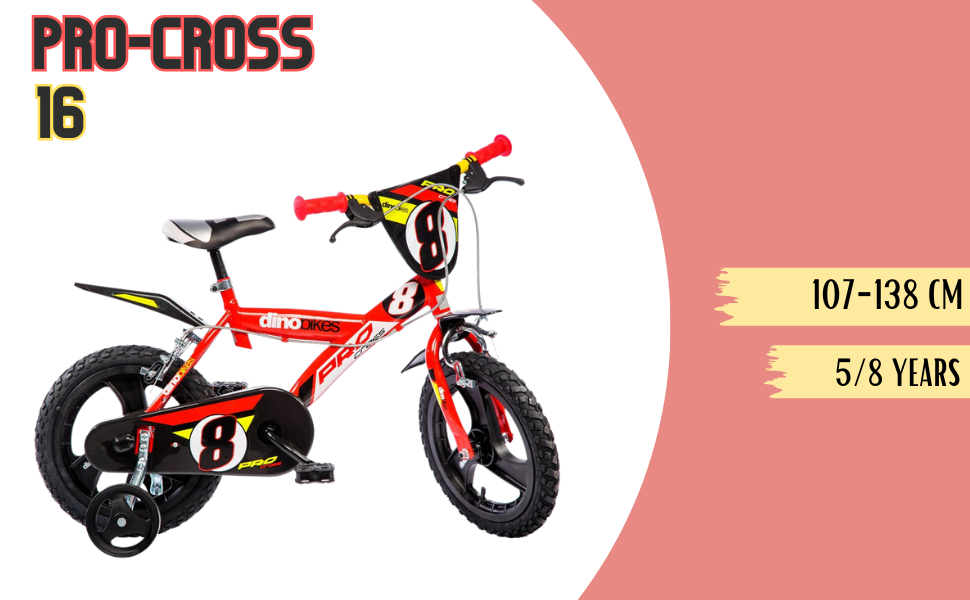 La bicyclette Pro Cross 16" est idéale pour les enfants de 4 à 8 ans, sûre et robuste, parfaite pour apprendre à pédaler et vivre des aventures en plein air.