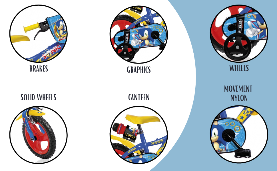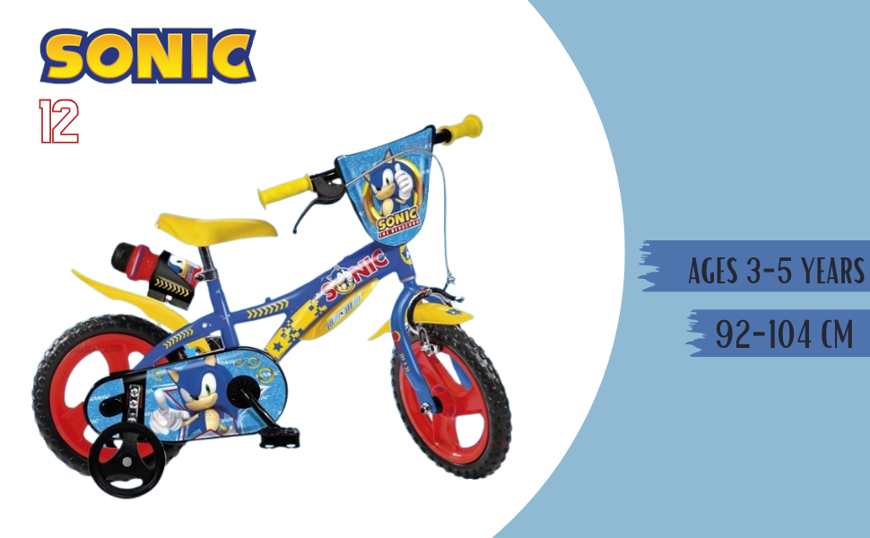 Le vélo Sonic 12" est parfait pour les petits fans de Sonic le Hérisson ! Un modèle conçu pour les enfants qui aiment la vitesse et l’aventure, tout comme Sonic et ses amis Tails, Knuckles et Amy. Avec ce vélo, chaque coup de pédale devient un défi contre le Dr. Eggman !