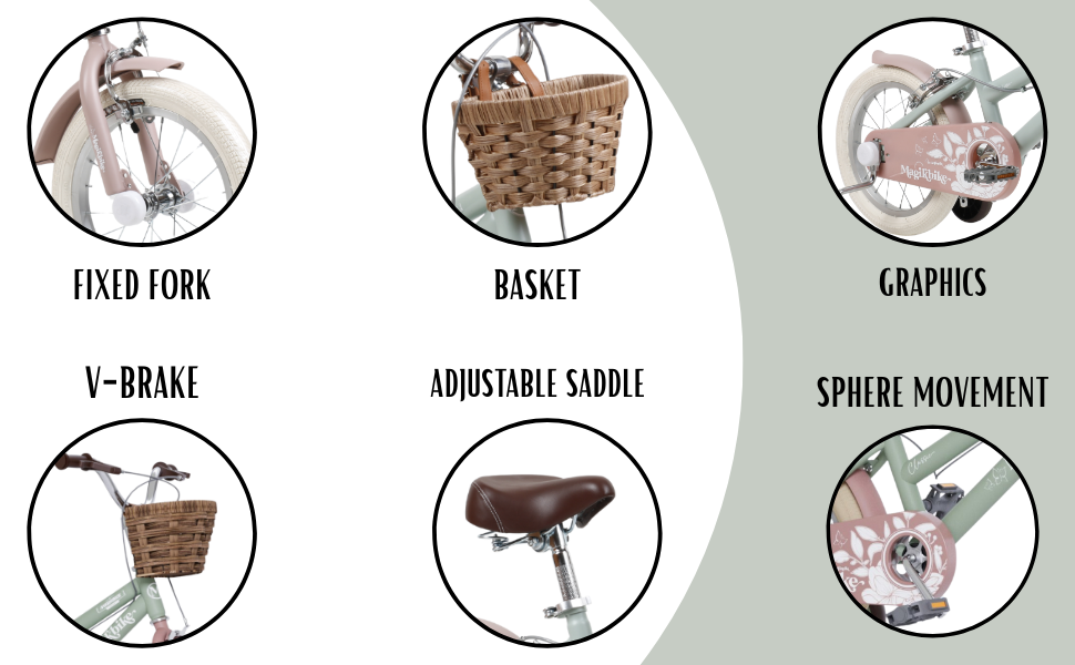 Le MagikBike CLASSIC 1952 VINTAGE est un vélo pour enfant au design élégant et rétro, conçu pour accompagner les plus petits dans leurs premières aventures sur deux roues. Grâce à sa structure robuste et aux accessoires inclus, il offre sécurité, stabilité et beaucoup de plaisir lors des premiers coups de pédale.