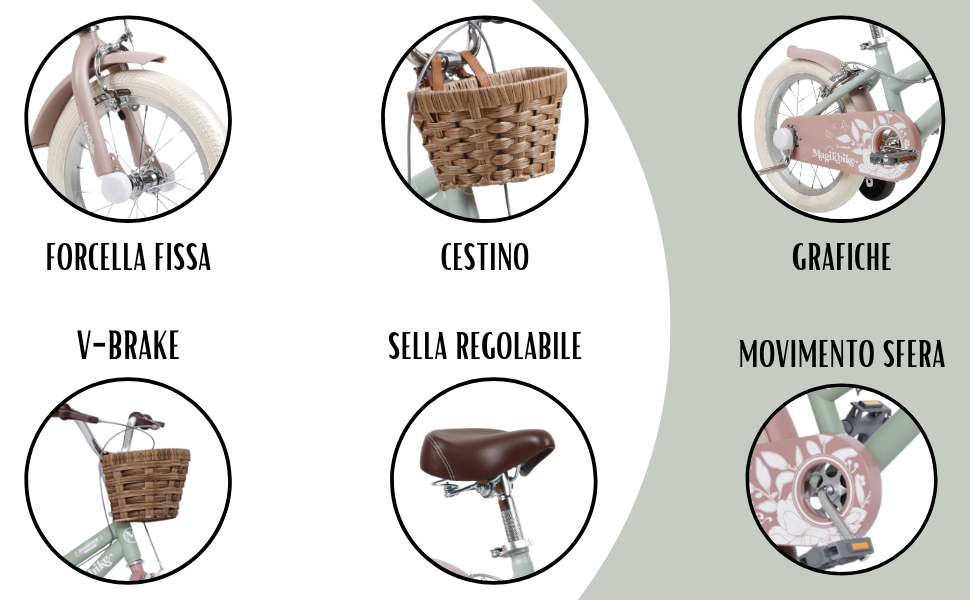 Le MagikBike CLASSIC 1952 VINTAGE est un vélo pour enfant au design élégant et rétro, conçu pour accompagner les plus petits dans leurs premières aventures sur deux roues. Grâce à sa structure robuste et aux accessoires inclus, il offre sécurité, stabilité et beaucoup de plaisir lors des premiers coups de pédale.