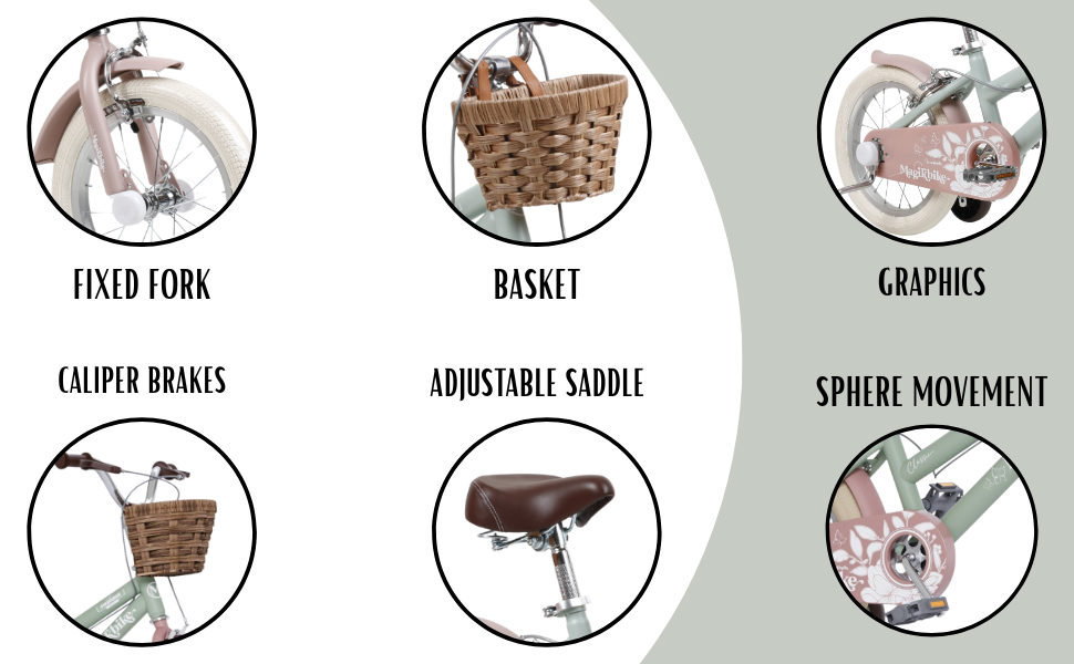 Le MagikBike Antonella est un vélo pour fille au design élégant et rétro, conçu pour accompagner les plus petites dans leurs premières aventures sur deux roues. Grâce à sa structure robuste et aux accessoires inclus, il offre sécurité, stabilité et beaucoup de plaisir lors des premières balades. Son style classique avec panier avant le rend parfait pour les promenades au parc ou en ville.