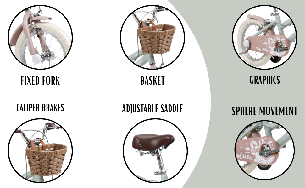 Le MagikBike Antonella est un vélo pour fille au design élégant et rétro, conçu pour accompagner les plus petites dans leurs premières aventures sur deux roues. Grâce à sa structure robuste et aux accessoires inclus, il offre sécurité, stabilité et beaucoup de plaisir lors des premières balades. Son style classique avec panier avant le rend parfait pour les promenades au parc ou en ville.