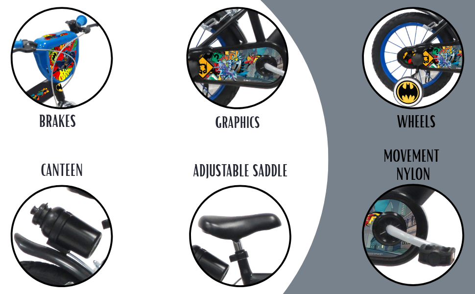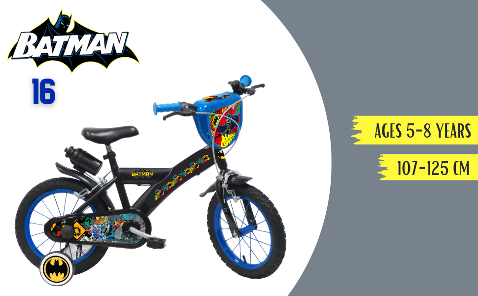 Apporta l’action de Gotham City sur les routes avec la Bicicletta di Batman 16". Entièrement fabriquée en Italie, cette bicyclette combine la robustesse du cadre en acier avec un design attrayant dédié au Chevalier Noir, idéale pour les petits héros prêts à vivre de grandes aventures.