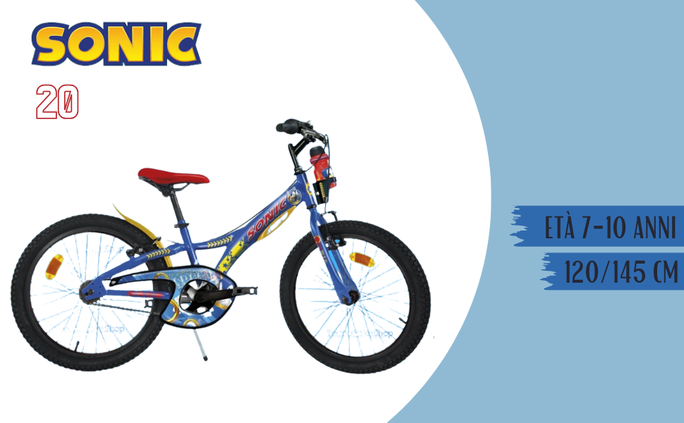 Vélo pour enfant Sonic, couleur bleue, cadre en acier avec roues de 20 pouces, pneus gonflables.