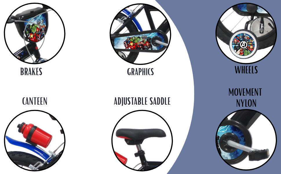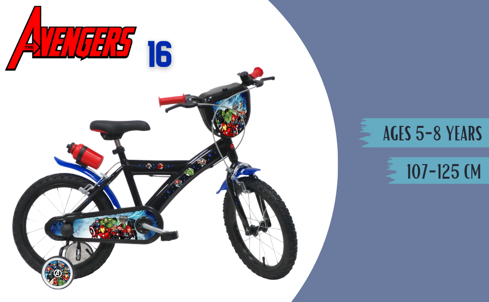La bicyclette officielle Marvel Avengers de 16” est le véhicule parfait pour les enfants qui veulent vivre chaque jour une aventure de super-héros ! Fabriquée entièrement en Italie, ce vélo allie robustesse, confort et style, grâce à sa structure en acier et aux superbes graphismes dédiés aux Avengers.