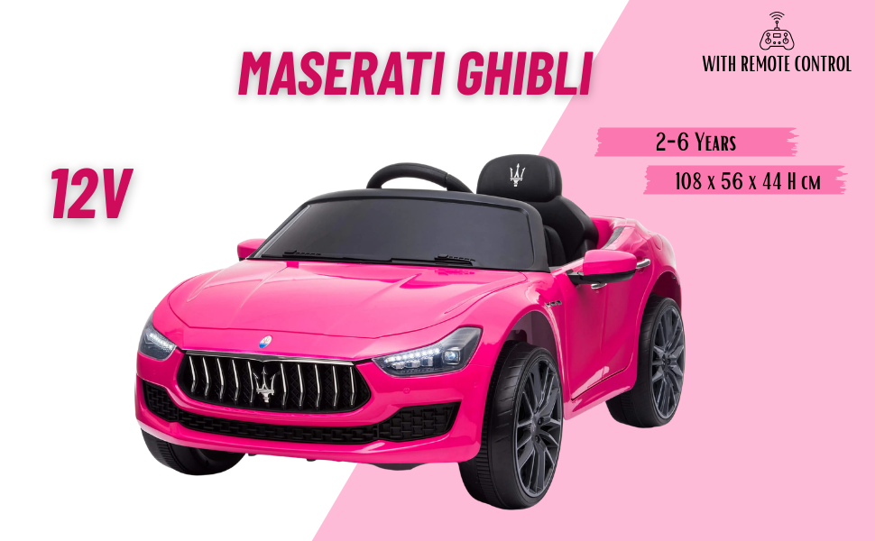 Parfaite pour les enfants à partir de 3 ans, la Maserati Ghibli 12V allie sécurité, divertissement et style, rendant chaque aventure inoubliable.